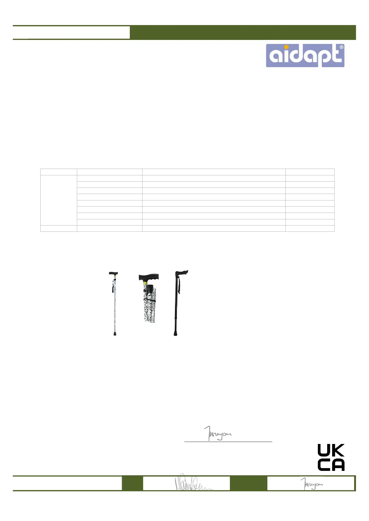 Declaration of Conformity – Single-base walking stick