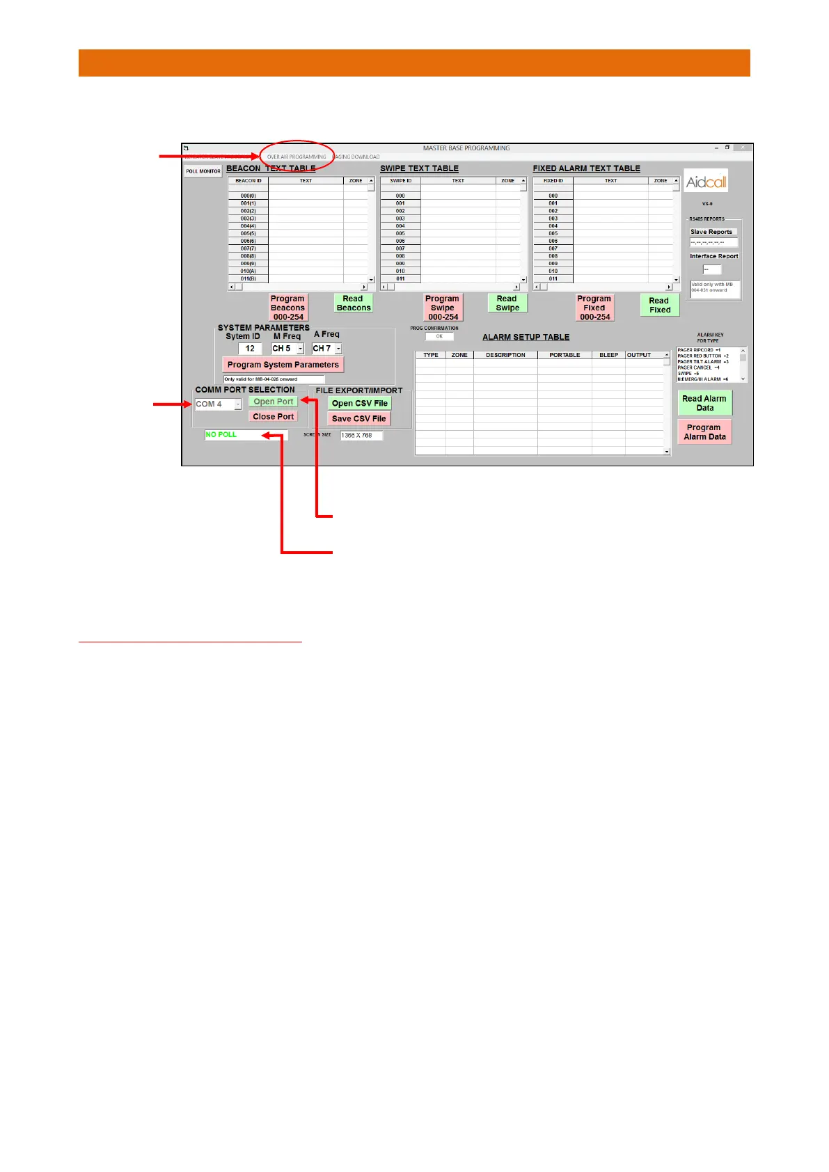 Run the Master Base programmer software and select the correct COM Port from the pull-down list…
