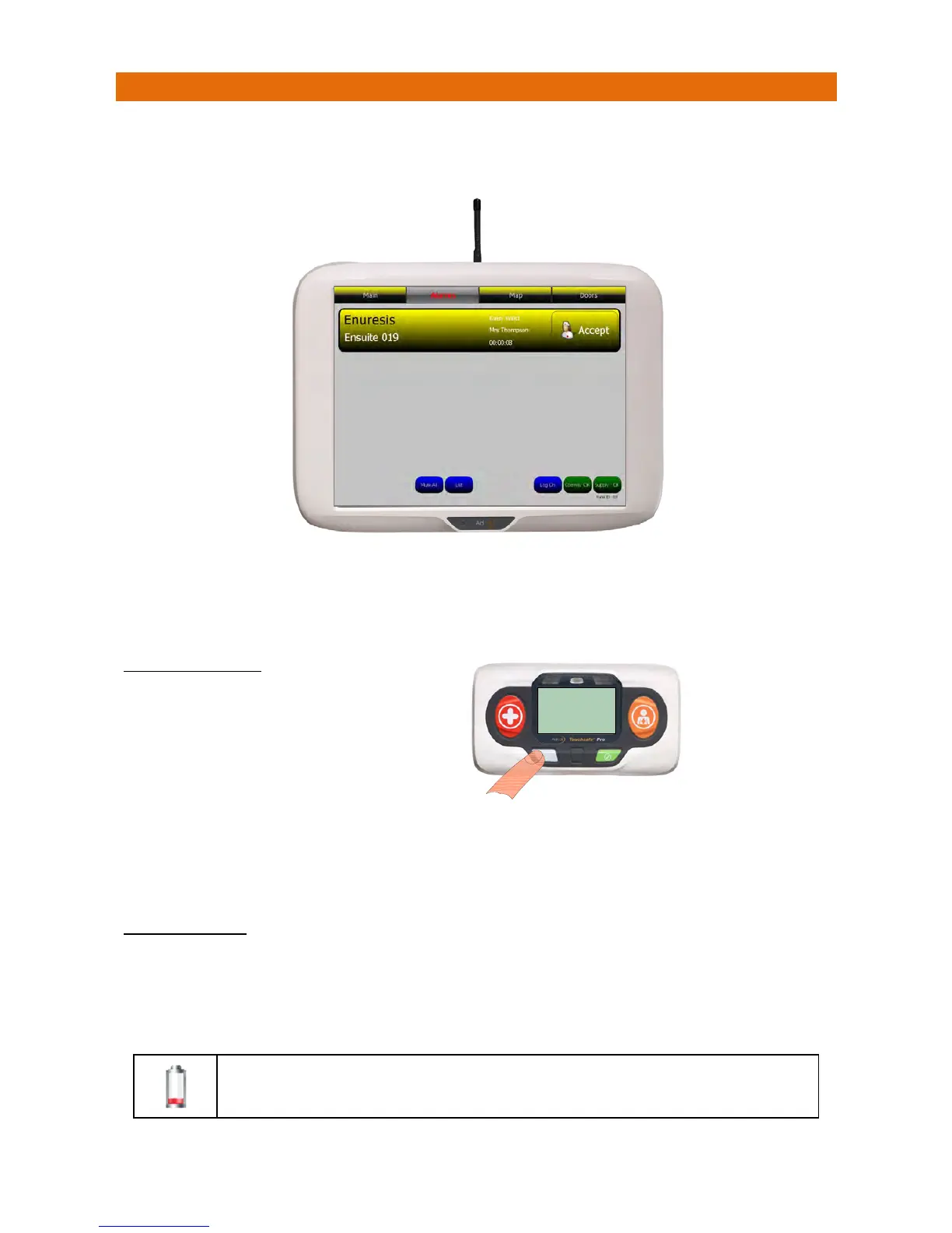 IfanEnuresisSensorisactivatedthiswillbedisplayedonthepanelasshownbelow;
