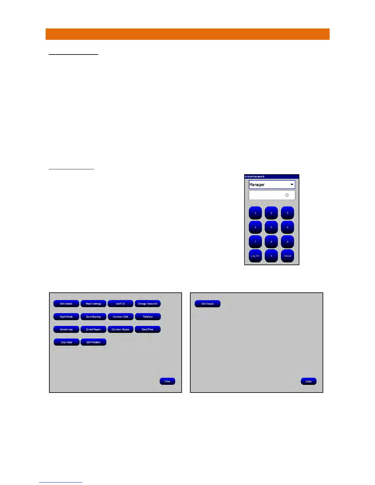 ThefunctionofeachbuttonontheManagersLogOnscreenisdescribedinSection8onthefollowing