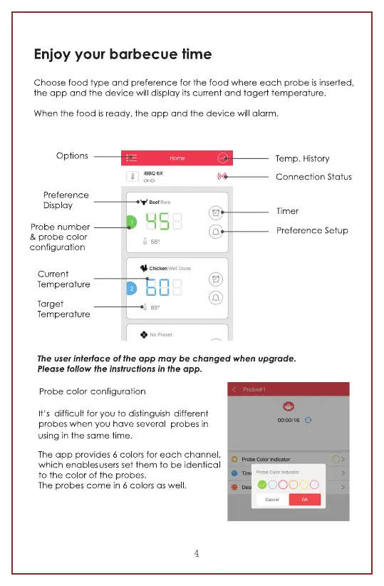 Aidmax WR01 - Enjoy Your Barbecue Time; App Interface Overview; Probe Color Configuration