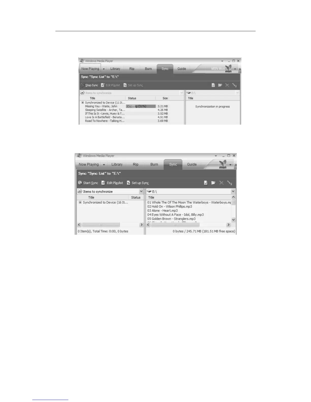 synchronisation process (as in the previous section) in Windows Media Player. During the