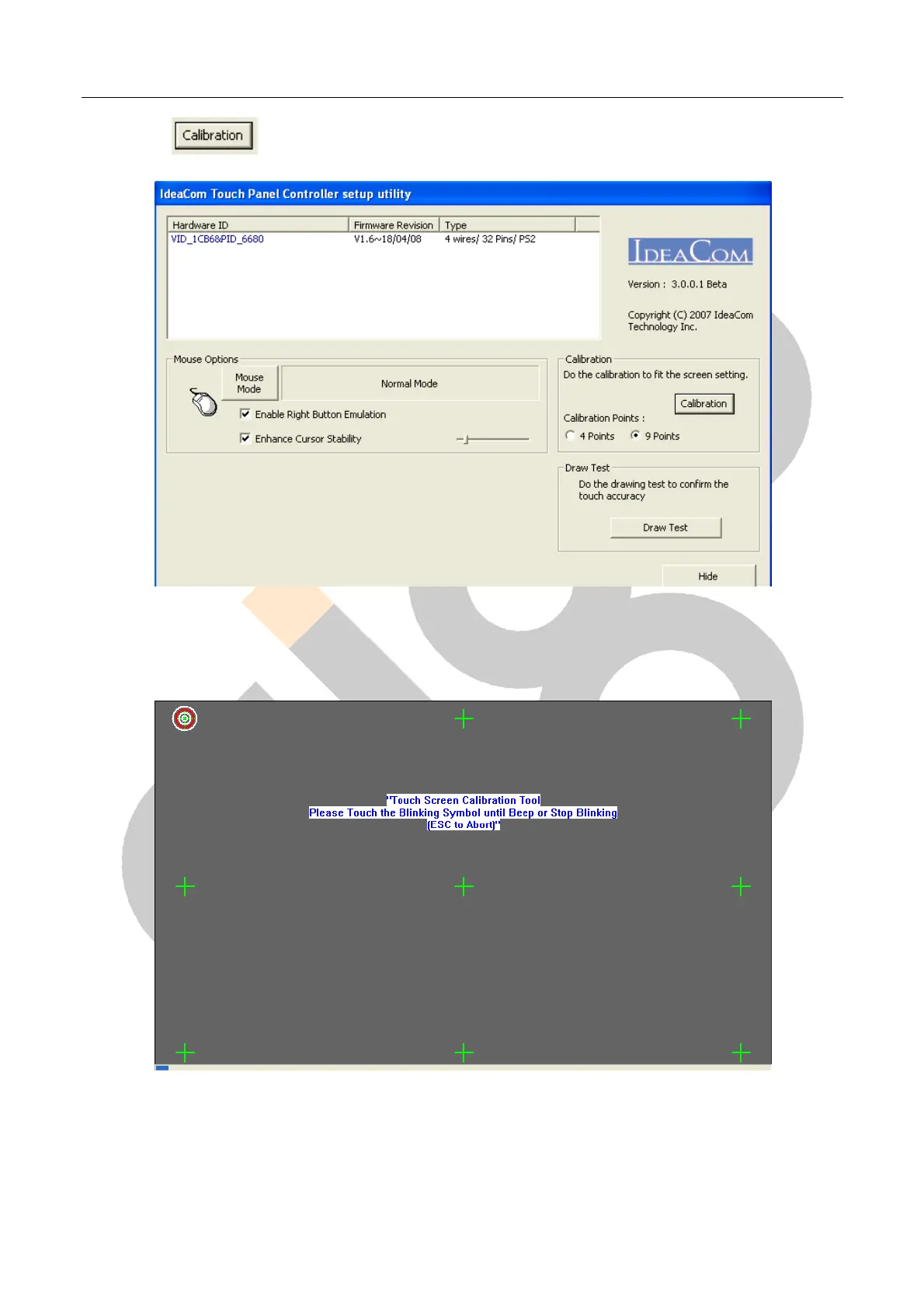 ¾ Use the Stylus pen to touch the points as be shown on the screen to fit the screen.