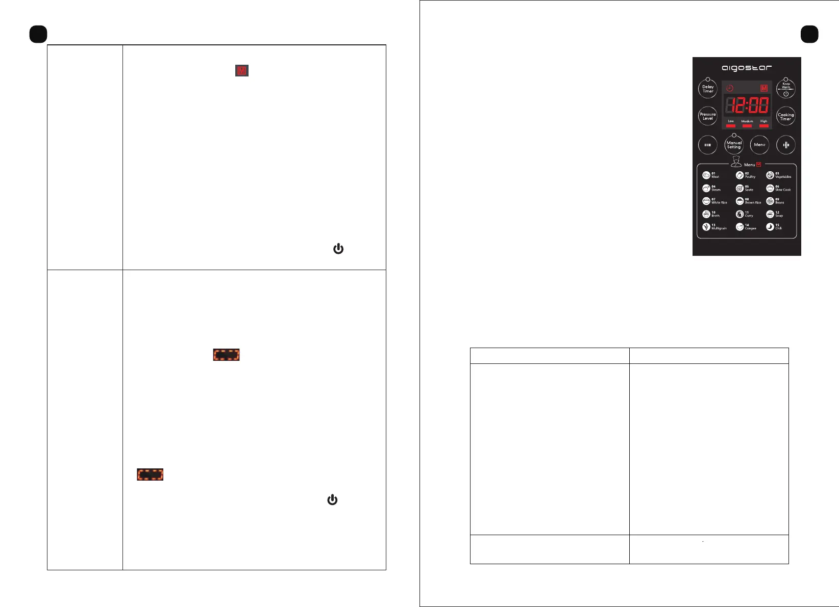 3.Salir del modo de cocción actual: Pulse el botón de “ ”para salir