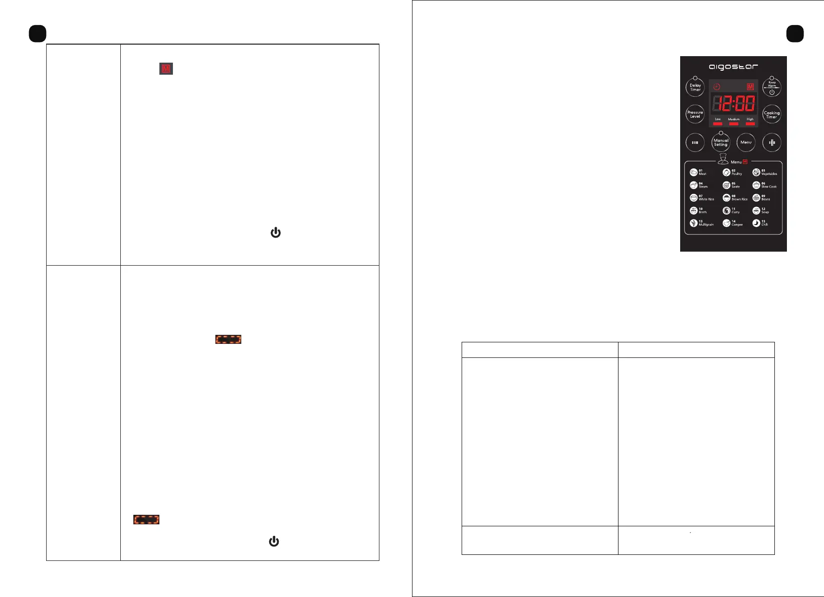 gotować na funkcji “Ustawienia Ręczne”, wyświetlacz wyświetli czas