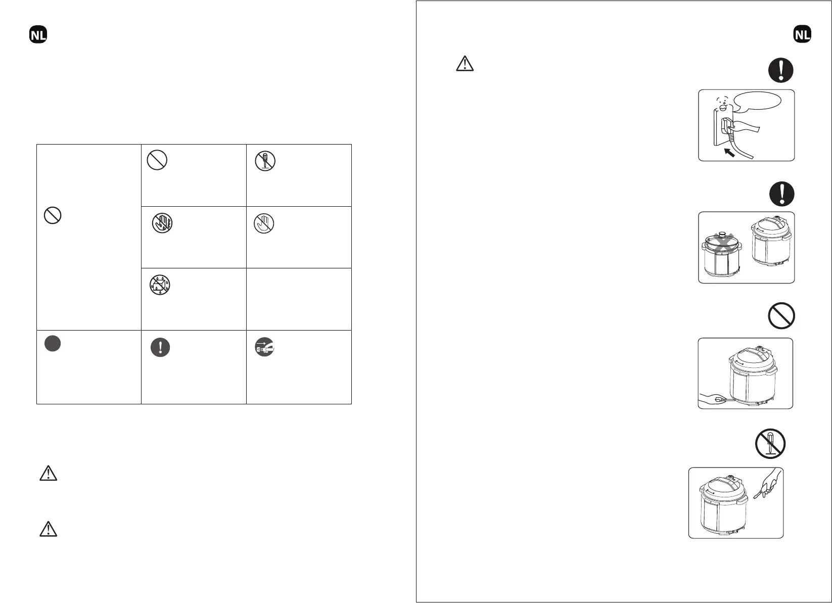 ● Het gevaar door verkeerd gebruik wanneer de volgende