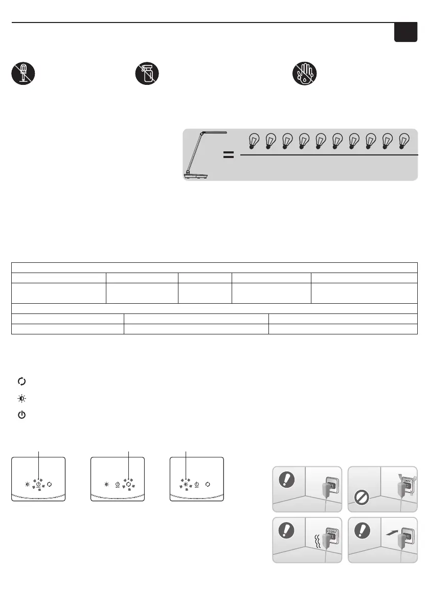 • Cette lampe de table est de classe II et ne peut être utilisée qu'avec l'adaptateur secteur fourni. La lampe ne peut être utilisée qu'avec