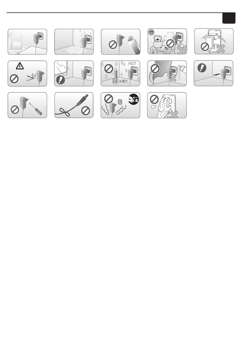 14.Veuillez ne pas toucher l'adaptateur avec les mains mouillées.