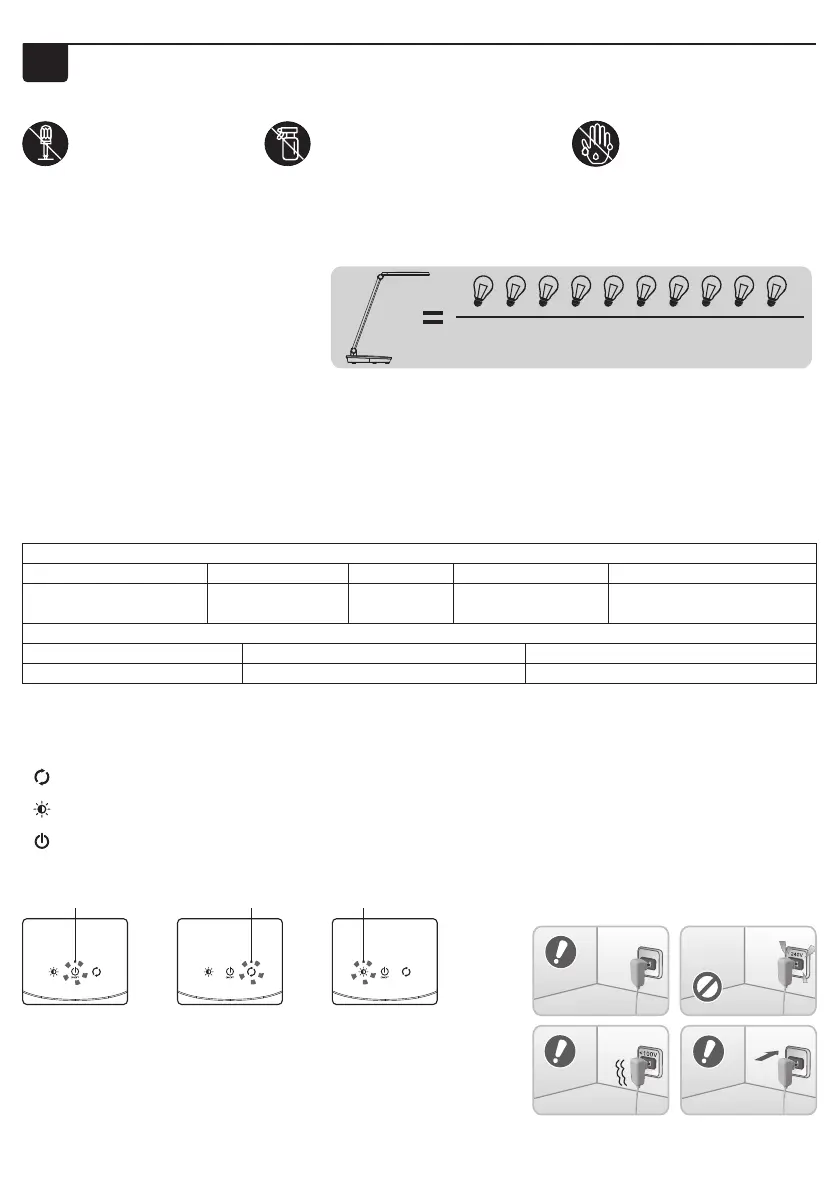 • La lámpara de mesa pertenece a la clase II, y sólo puede utilizarse junto con el dispositivo de control del LED. La lámpara sólo puede