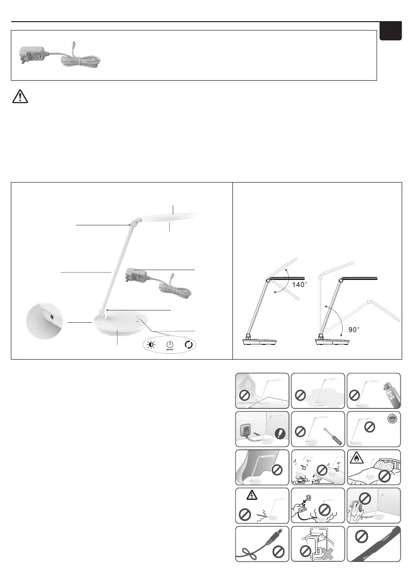 2.No utilice la lámpara de mesa en ambientes húmedos.