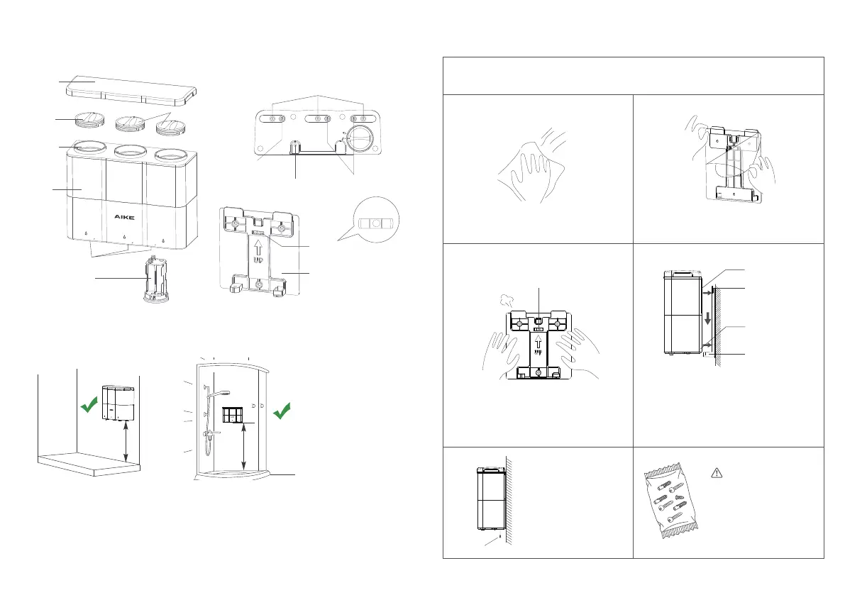 distributeur à l'aide de la plaque de montage autocollante. Suivez les instructions ci-dessous :