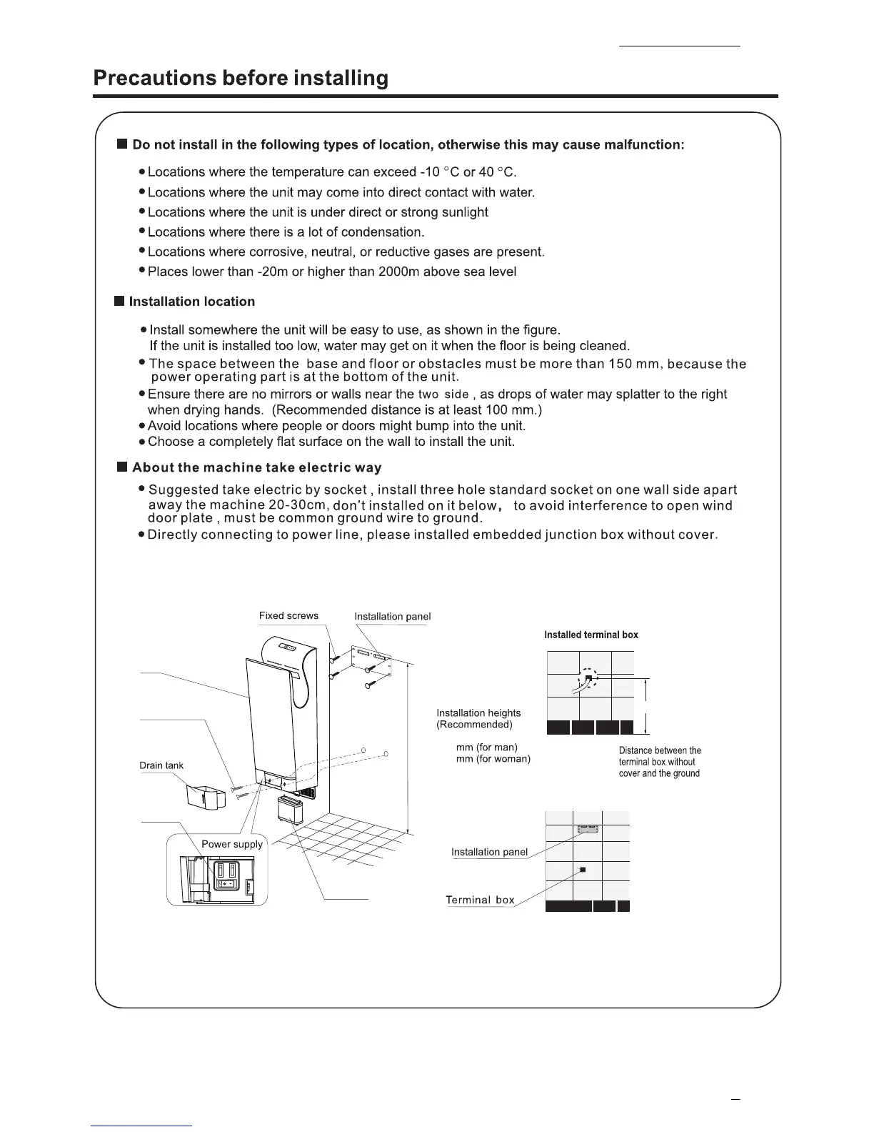 Aike AK2030 - Precautions before installing; Installation location; About the machine take electric way