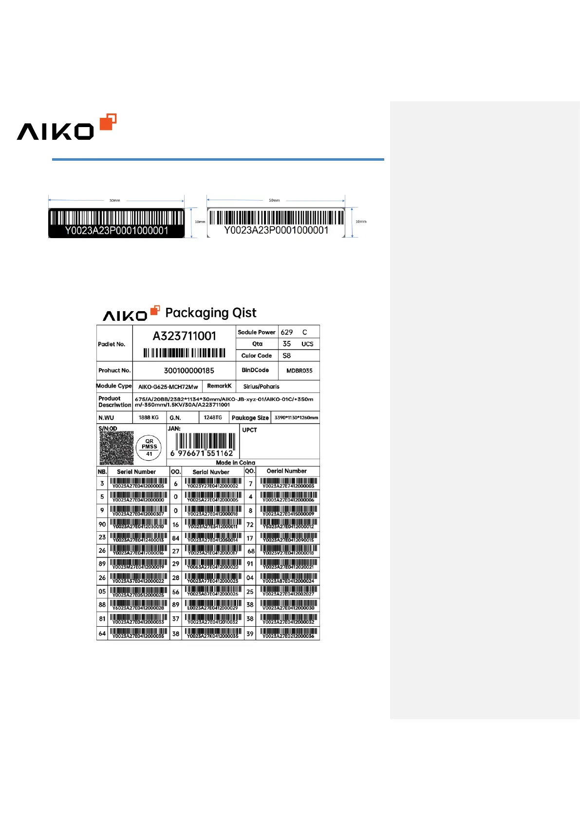 and marking the with S1, S2, S3, on the packing list. Following as a sample: