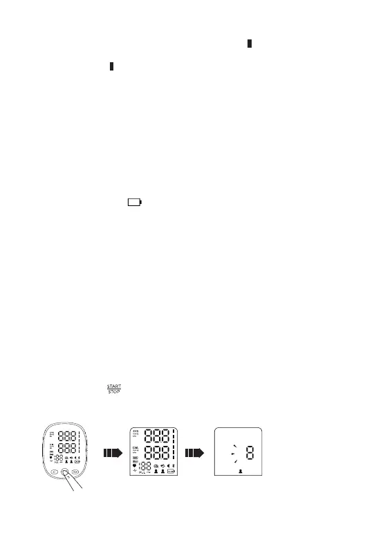 All display symbols appear on the screen. The cuff starts to