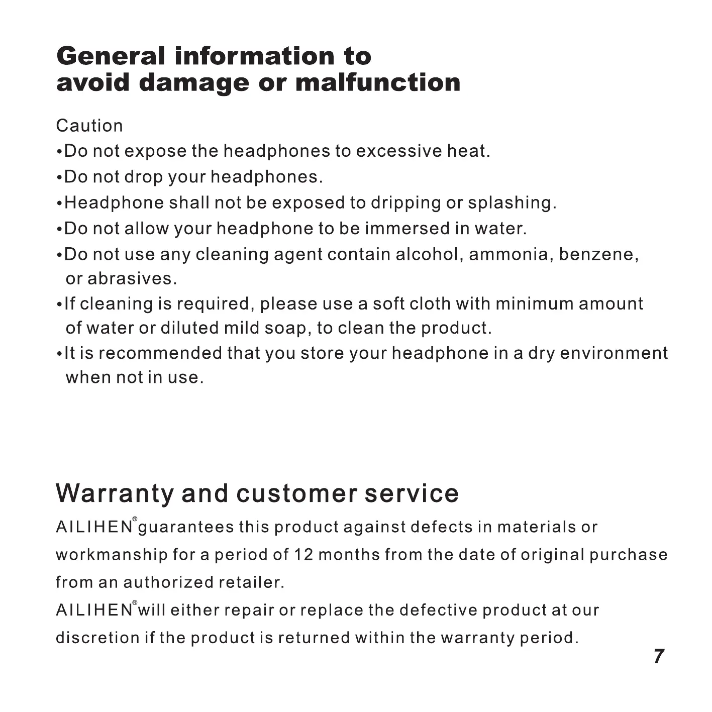 of this product. AILIHEN'does not cover normal wear and tear, blown