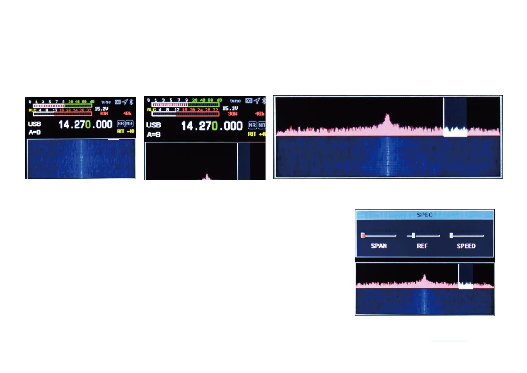 key to select and display the waterfall chart, and long press to select and display the spectrum chart, and long press the waterfall