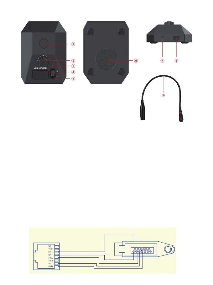 9. Connettore PTT a pedale: Inserire il PTT a pedale nella porta per utilizzarlo; premere il PTT a pedale e parlare