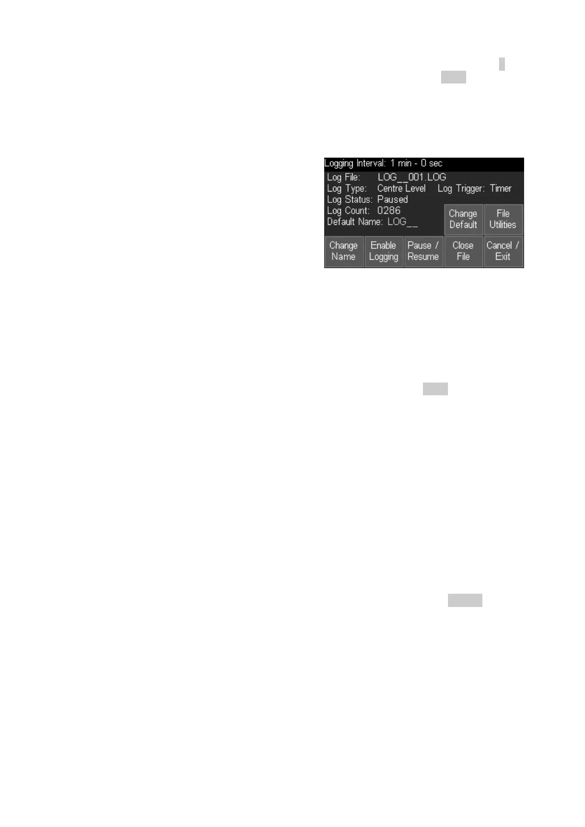 to entering Logging Control. This information is shown within the area above the keys.