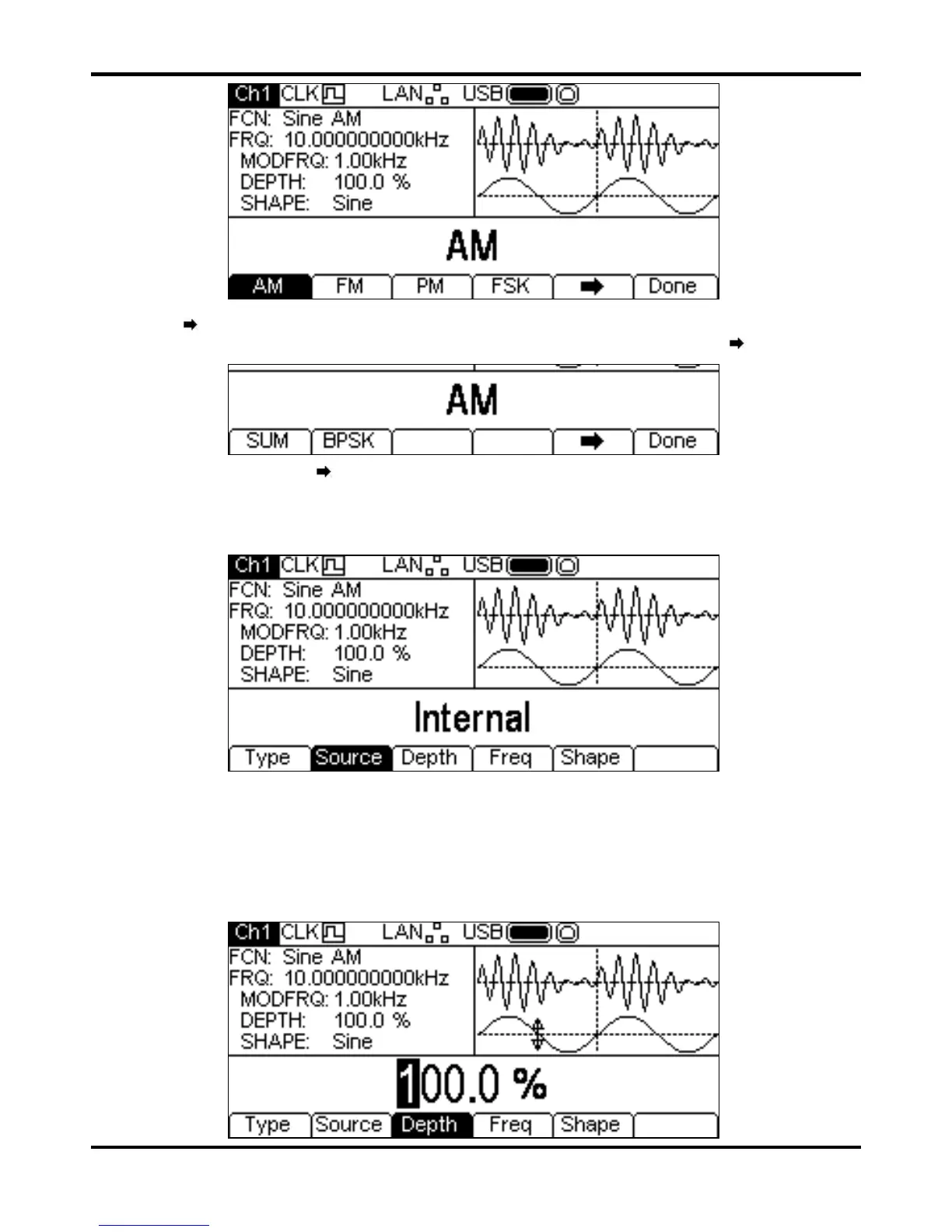 To set the modulation depth press the