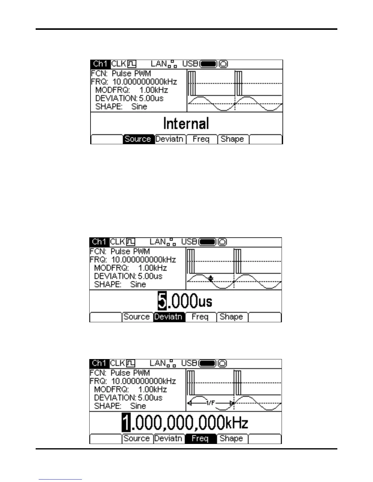 appear in the Edit Box and the modulating waveform in the Graph Box will show that deviation is
