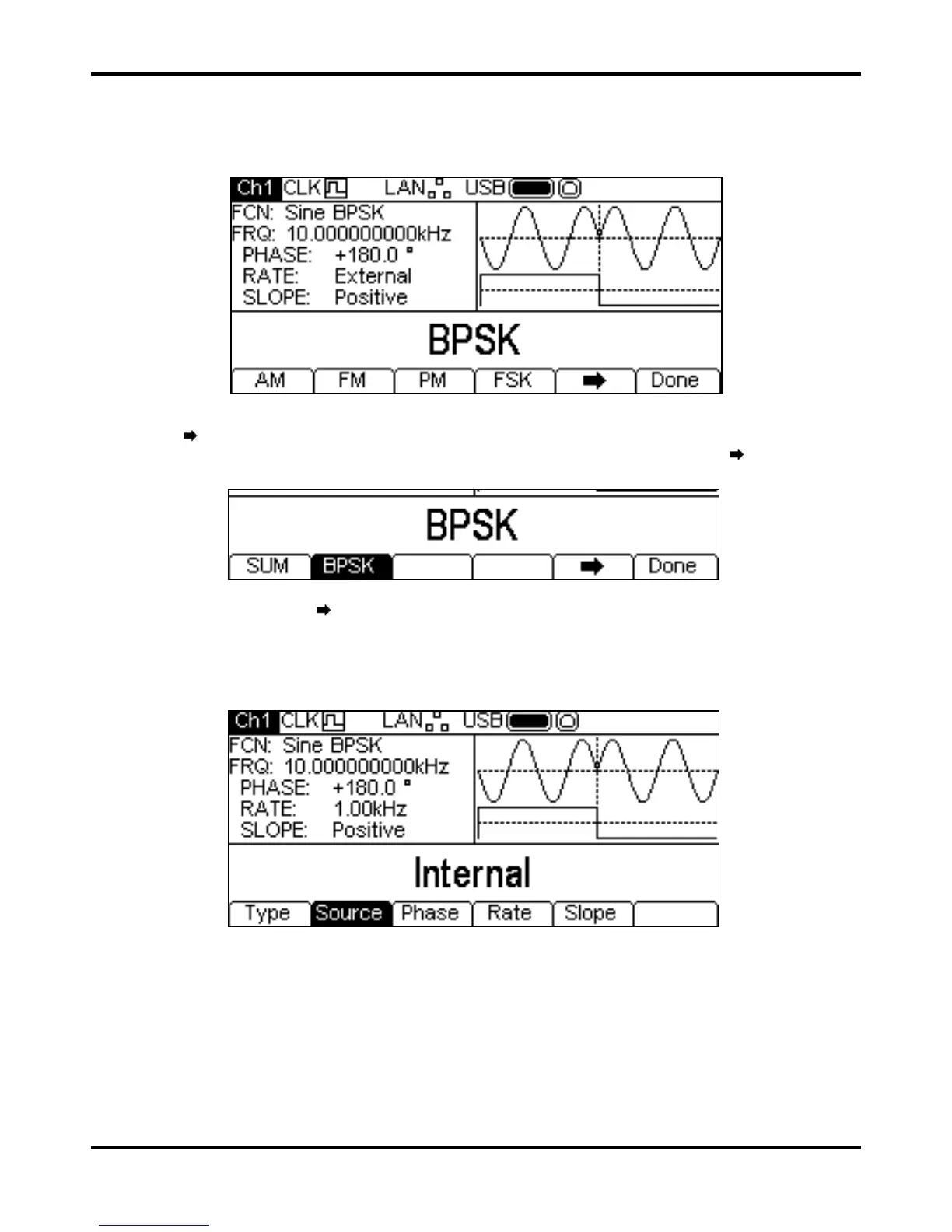 BPSK is not already selected press the BPSK soft-key followed by the Done key