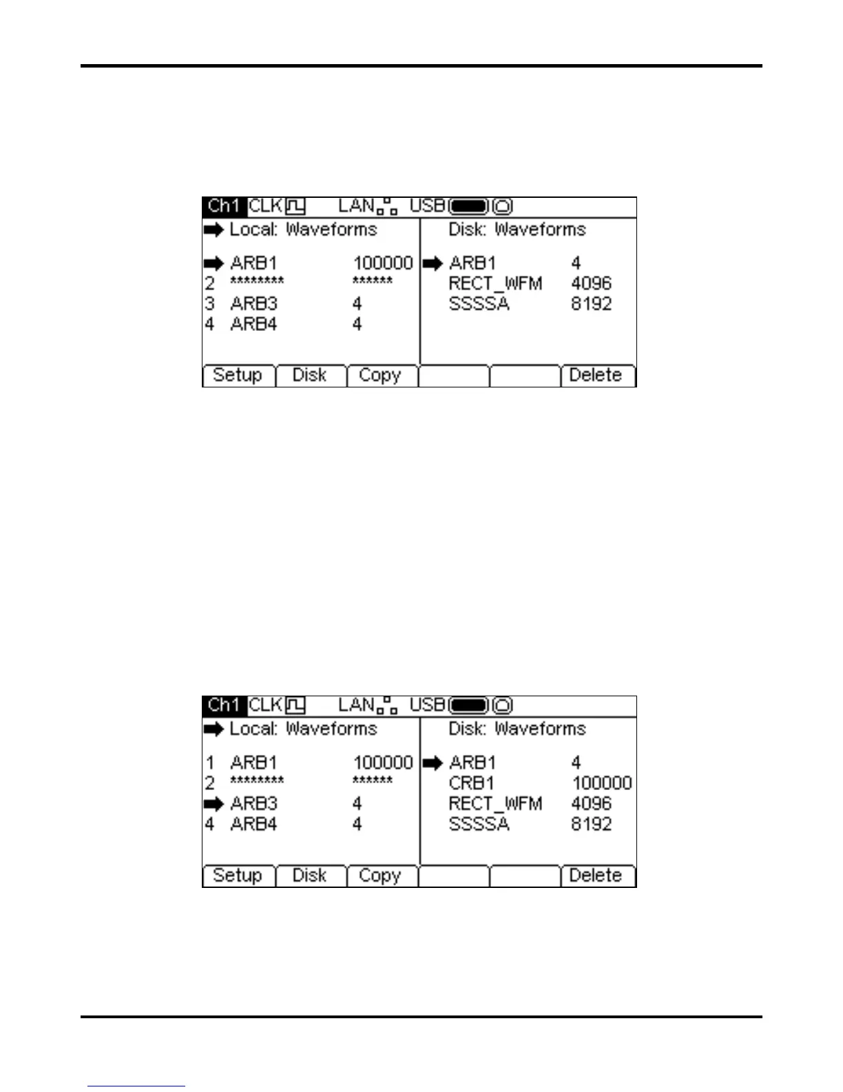 There are two operations available for waveform files as shown by the soft-key labels