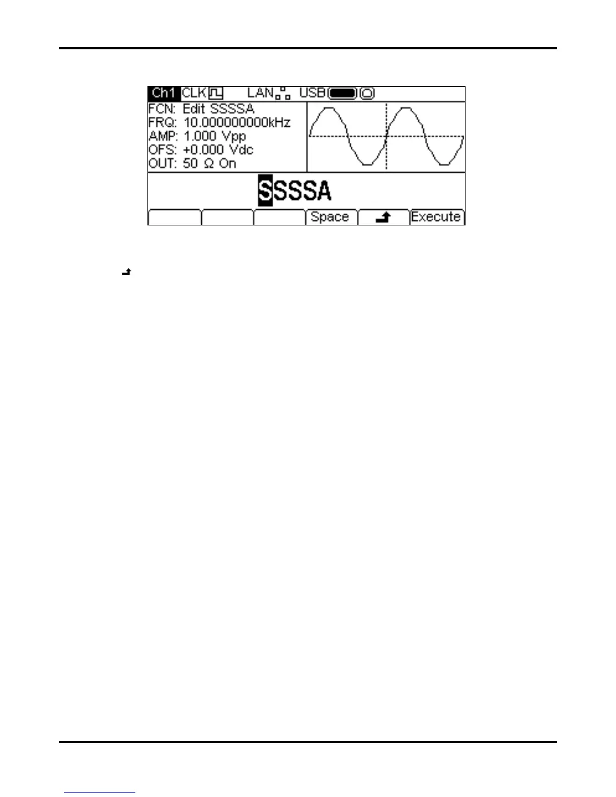 The soft-key labels, KNOB and cursor keys allow the name to be edited.