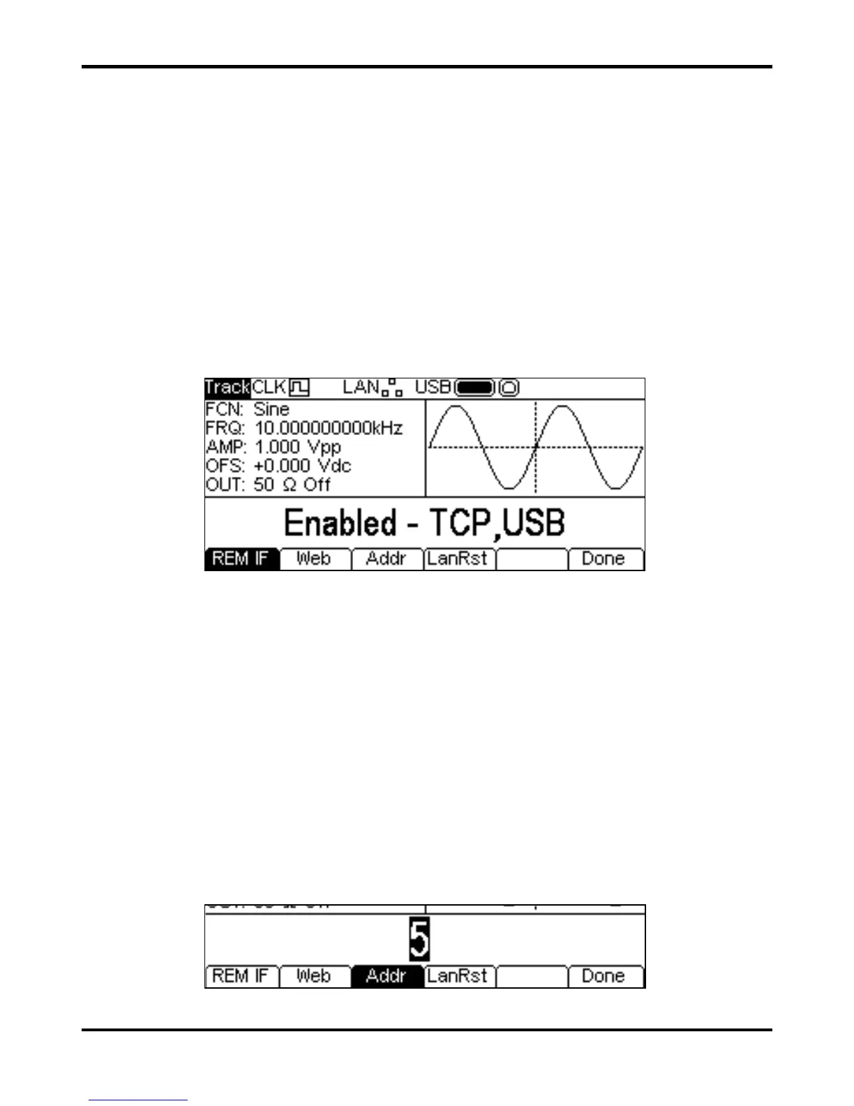 The address is set from the instrument’s front panel or web pages. To set the address from the front