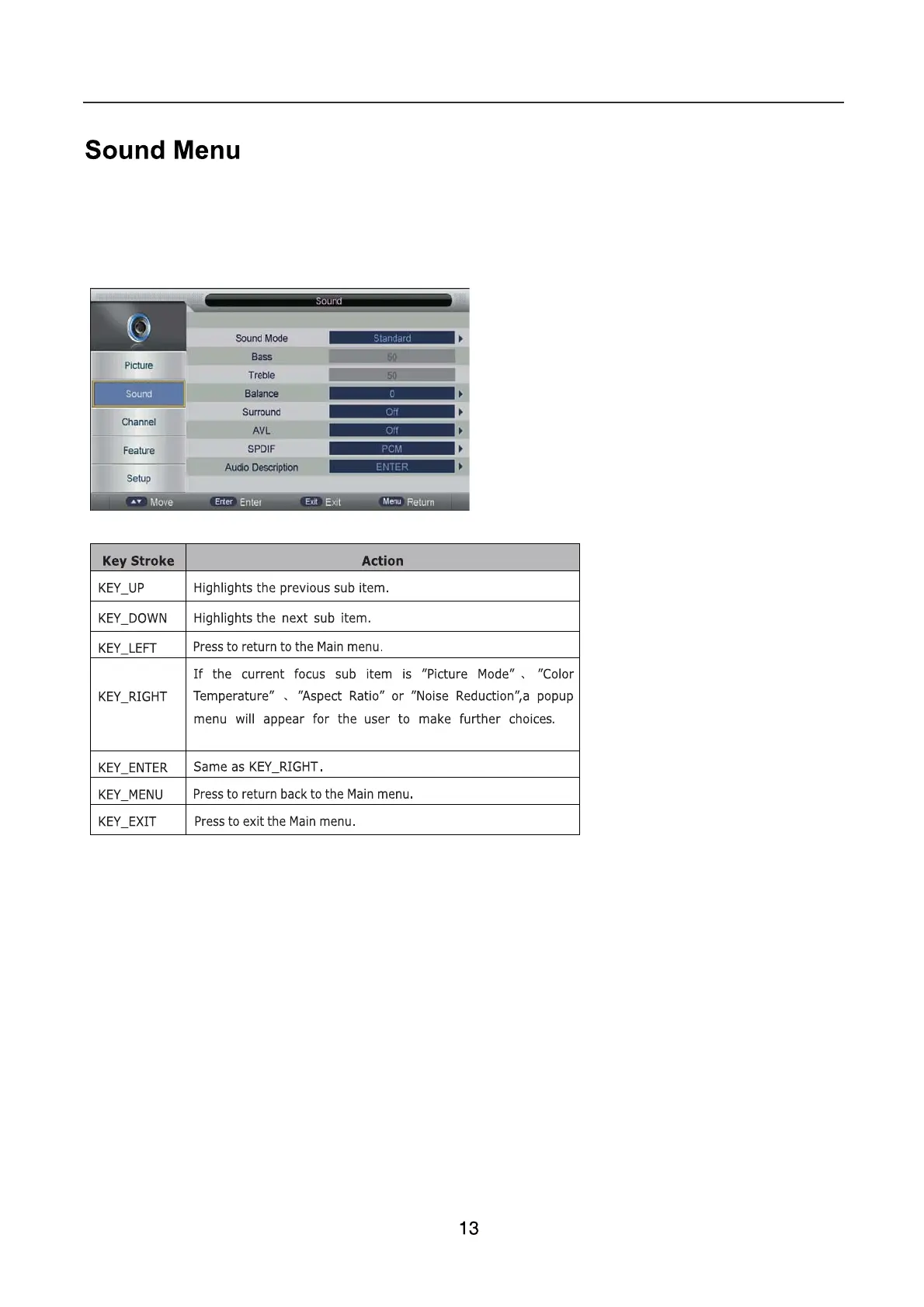 button to highlight Sound, then press the "Right" button to shift the focus to the sub-items