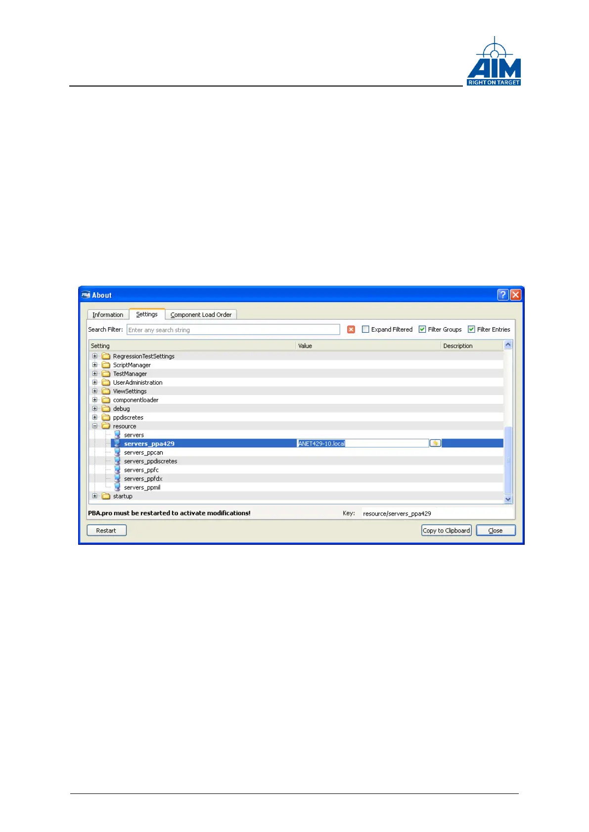 After a re-start, PBA.pro should show the available ANET429 ARINC-Resources. The