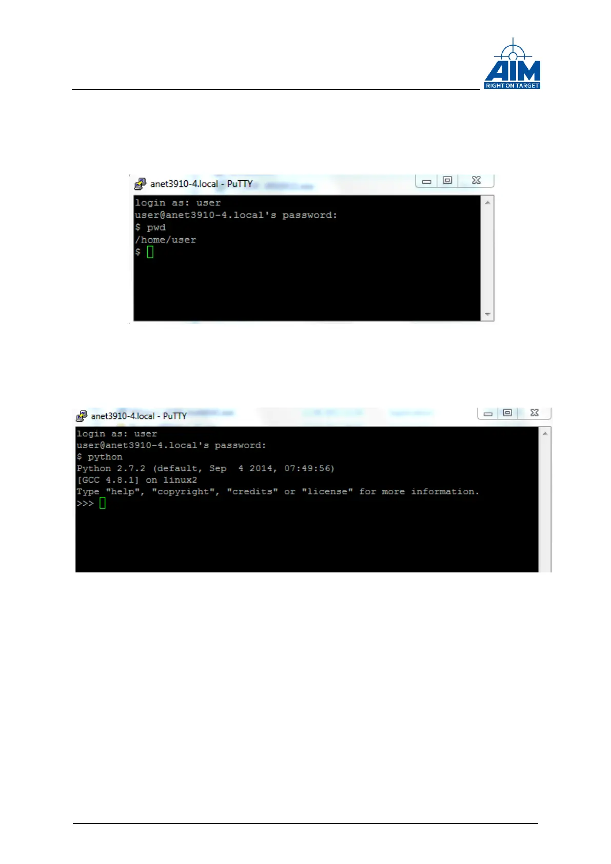(‘user’ is the factory default) and password (‘aim’ is the factory default) in order to get