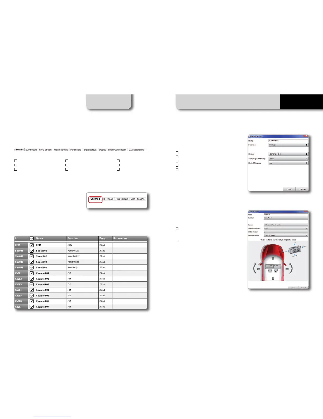 In this page you can define all the parameters for your analog inputs, speed inputs and digital