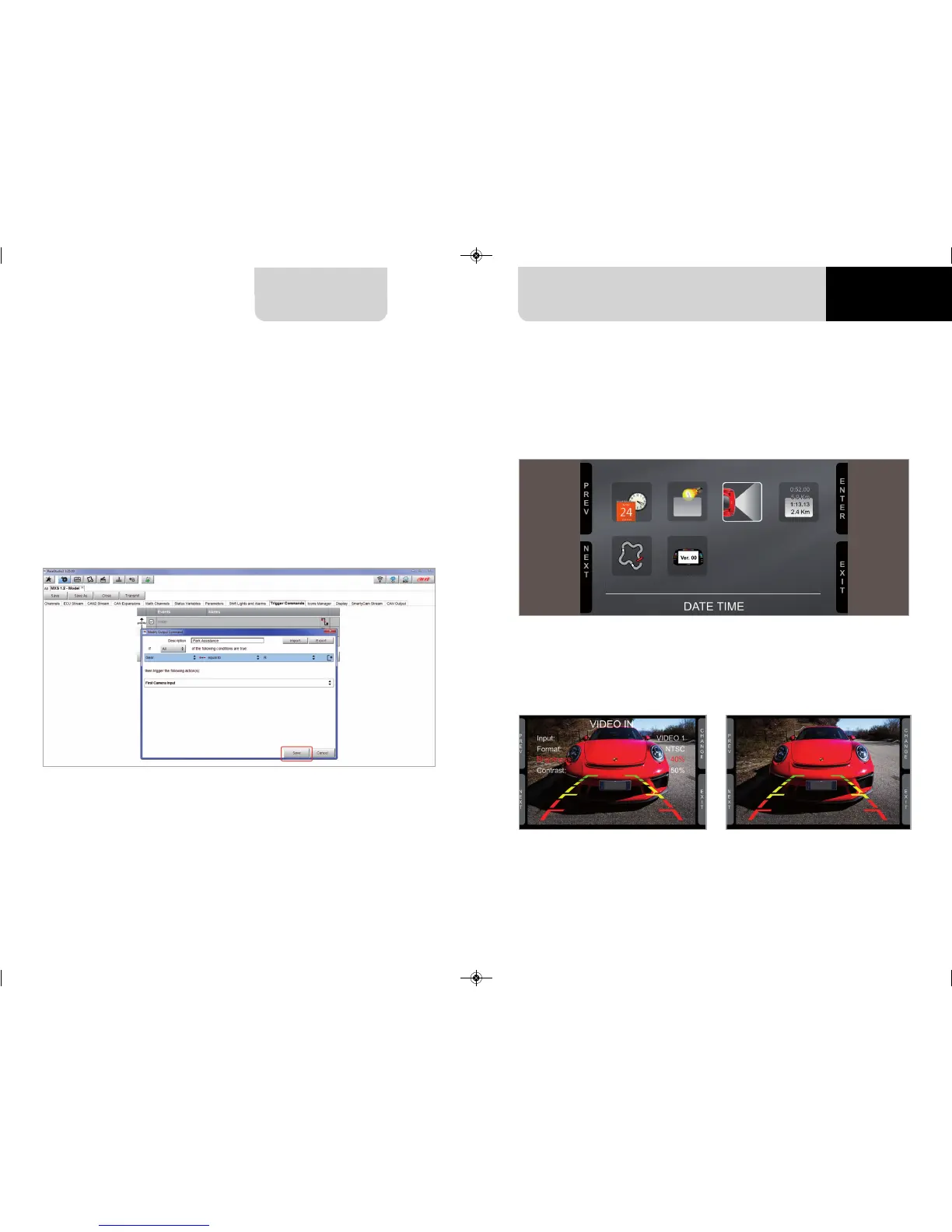 Please note: rear camera dimensions and MX Strada series camera input pinout are shown