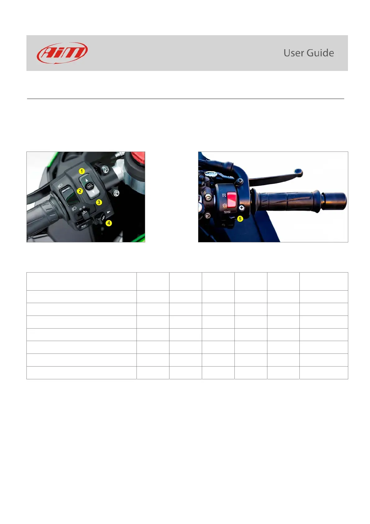 Kawasaki Ninja features five buttons: four on the left handlebar and one on the right one, used to manage MXK10 dash logger: