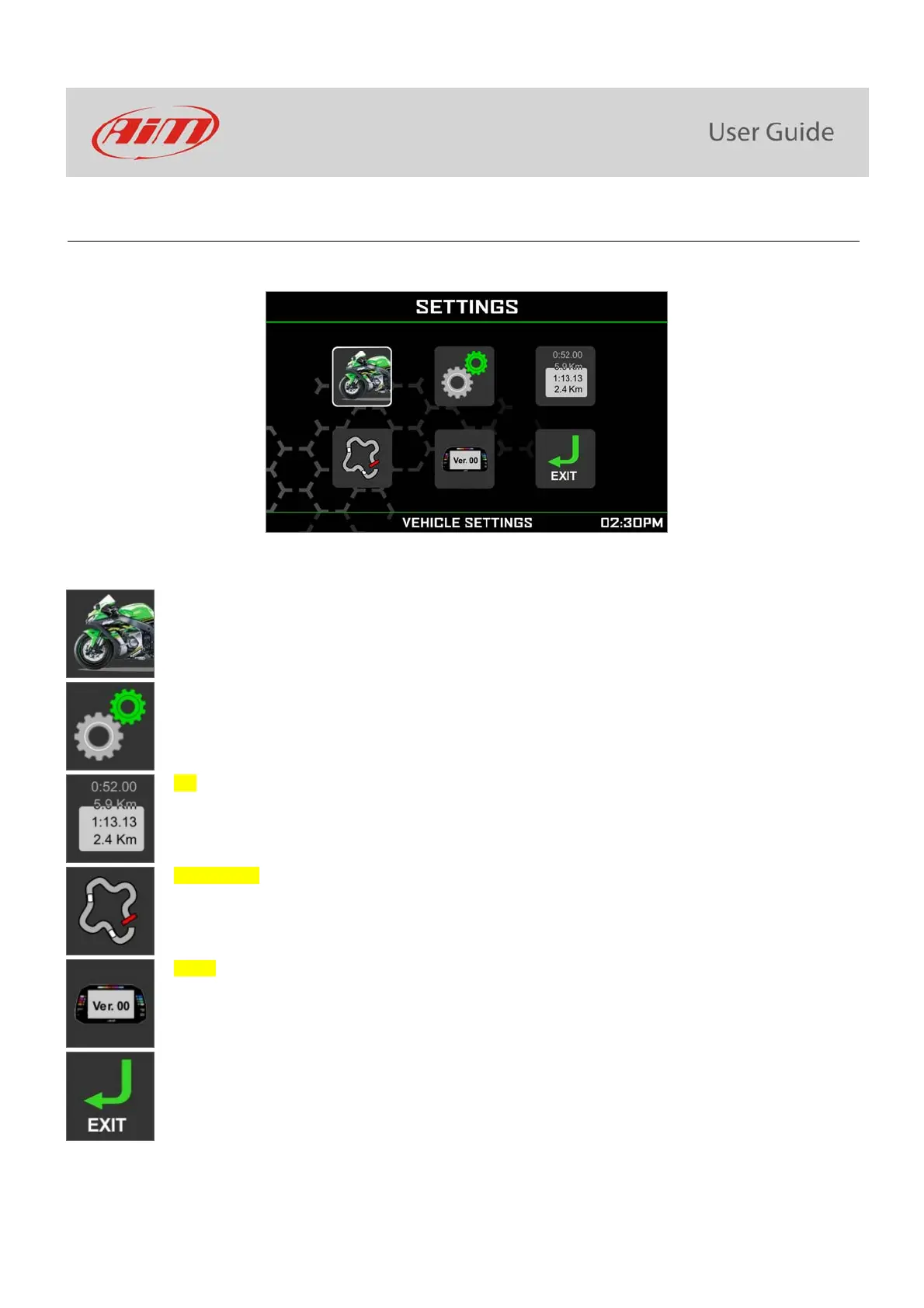 Aim MXK10 - Menu