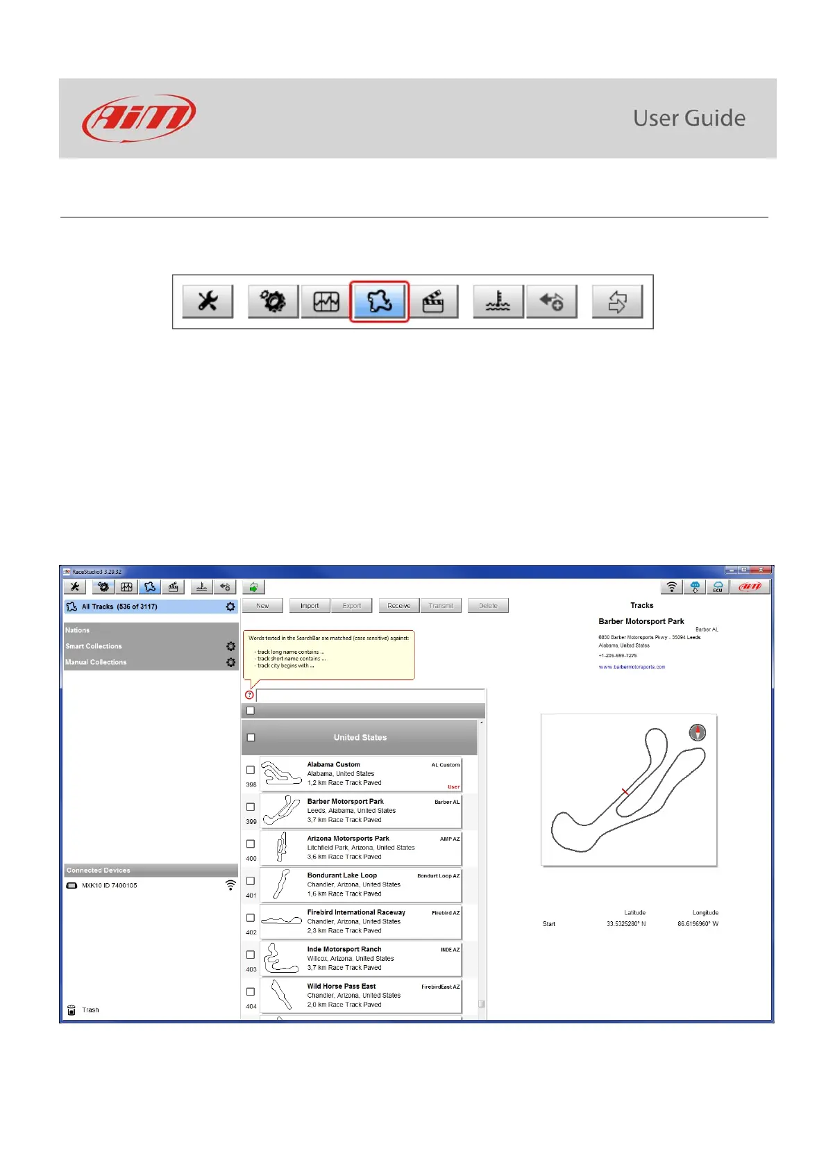 all the tracks listed in Race Studio 3 database. It automatically updates at start up if a connection to the Internet is available.