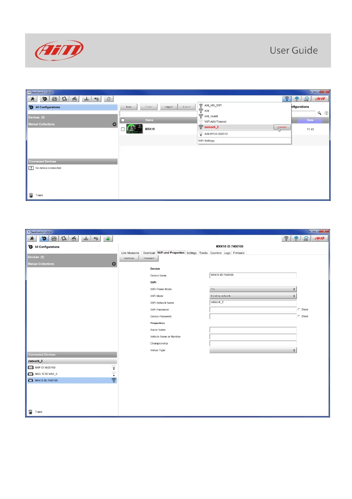 image below three AiM devices are connected to the same “network_2” WLAN.