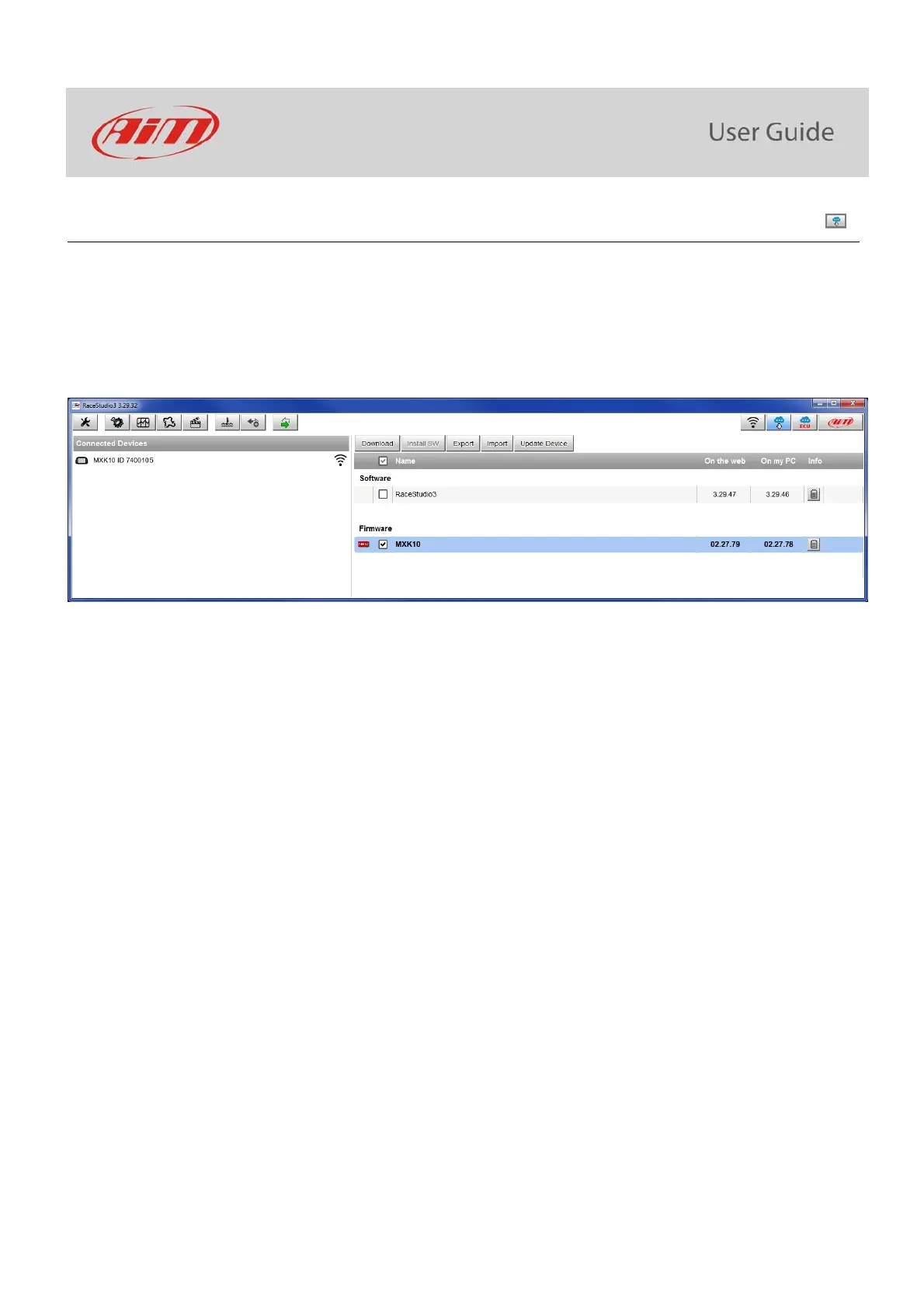 Once the new firmware has been downloaded connect the device to the PC via Wi-Fi or using the optional USB cable (part number