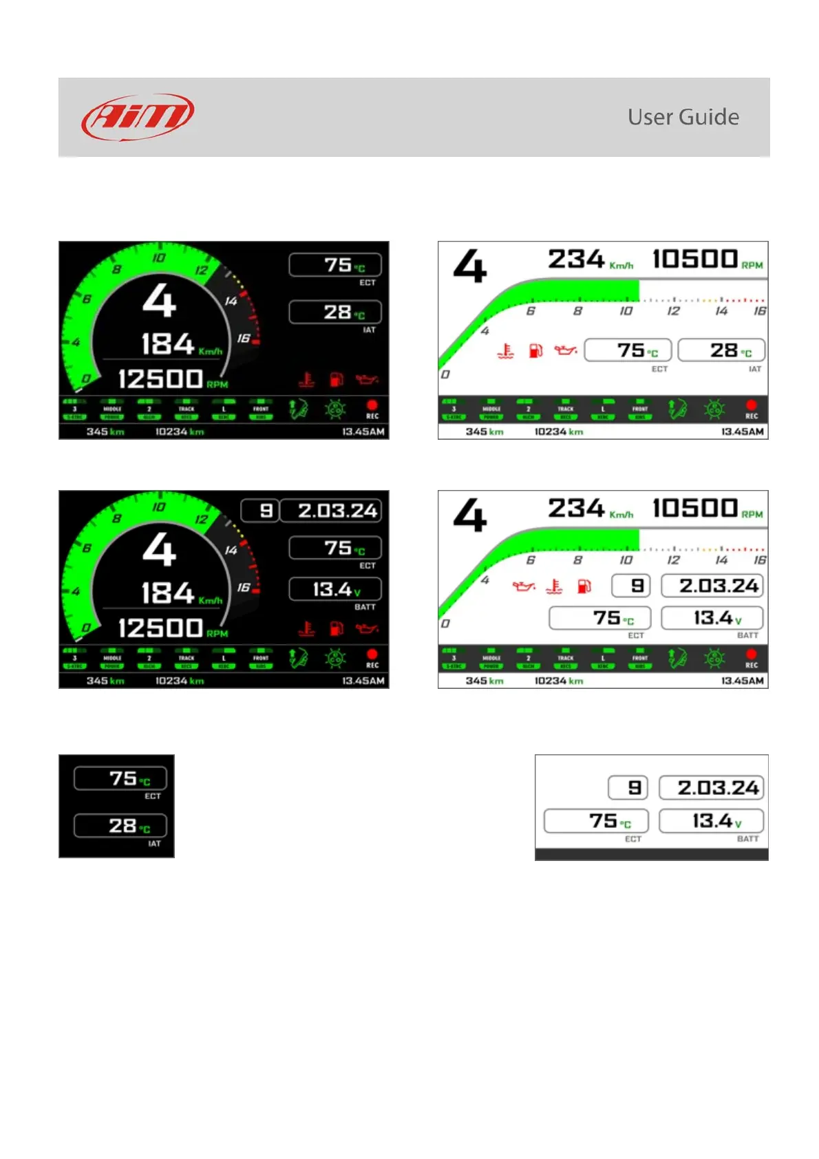 In road pages ECT or Engine Coolant Temperature (Water Temperature) and IAT or intake air temperature (Air Temperature) are shown