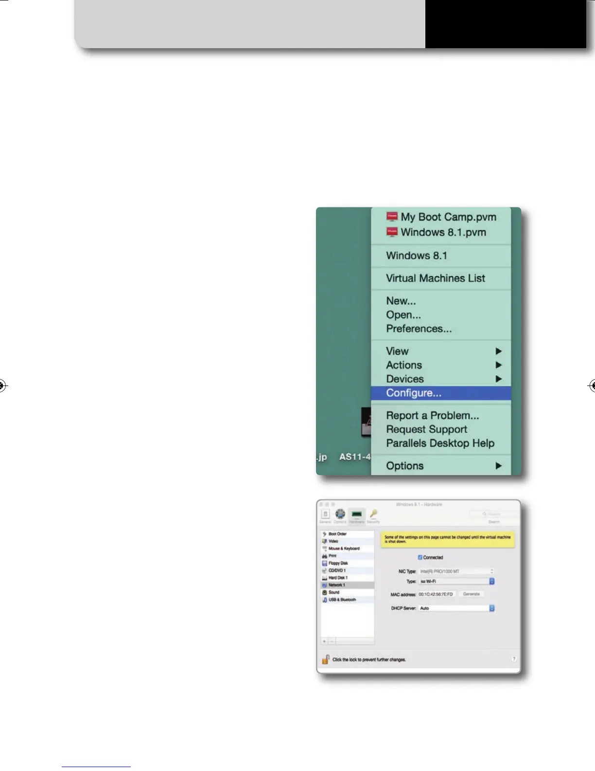 Choose “Configure…” option in Parallels