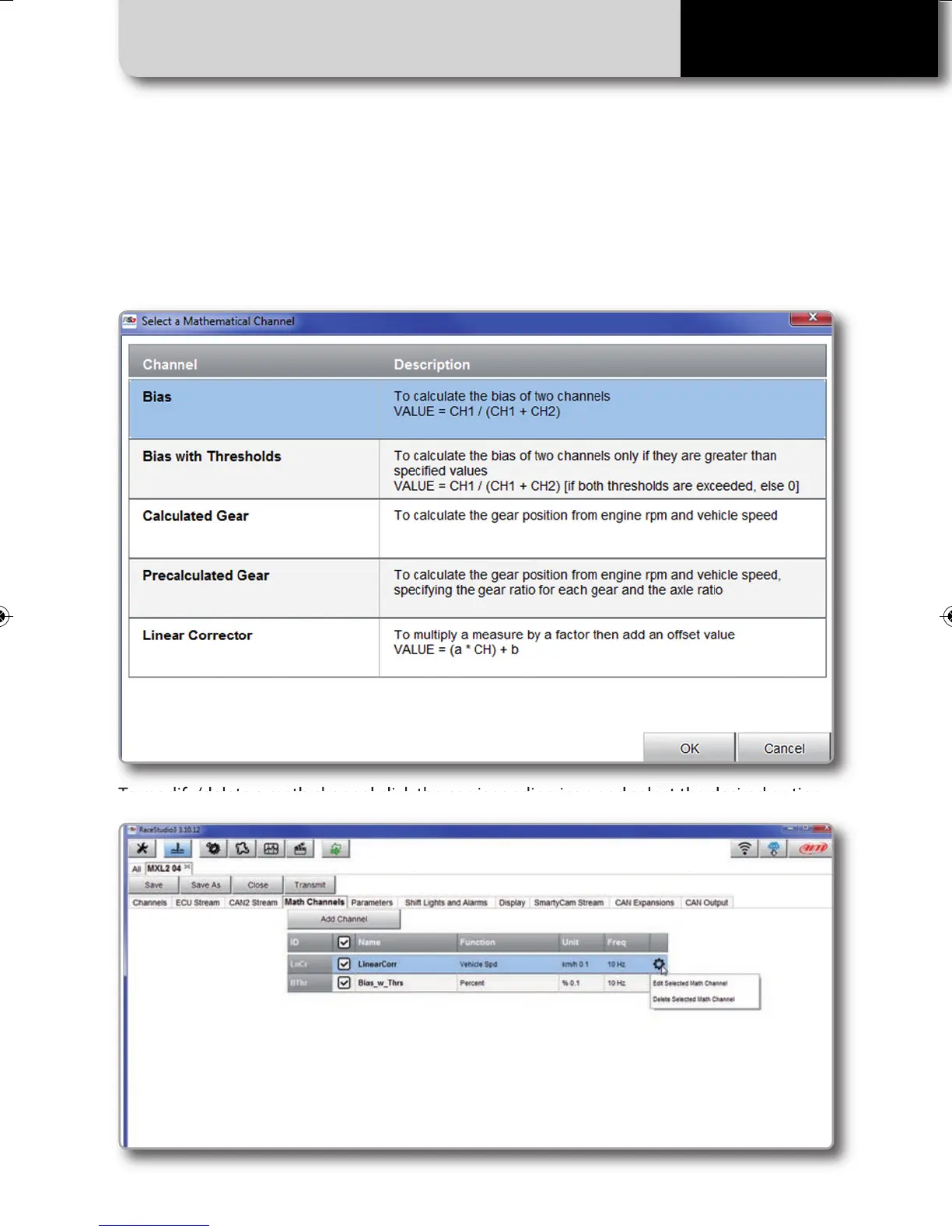 To modify/delete a math channel click the corrisponding icon and select the desired option.