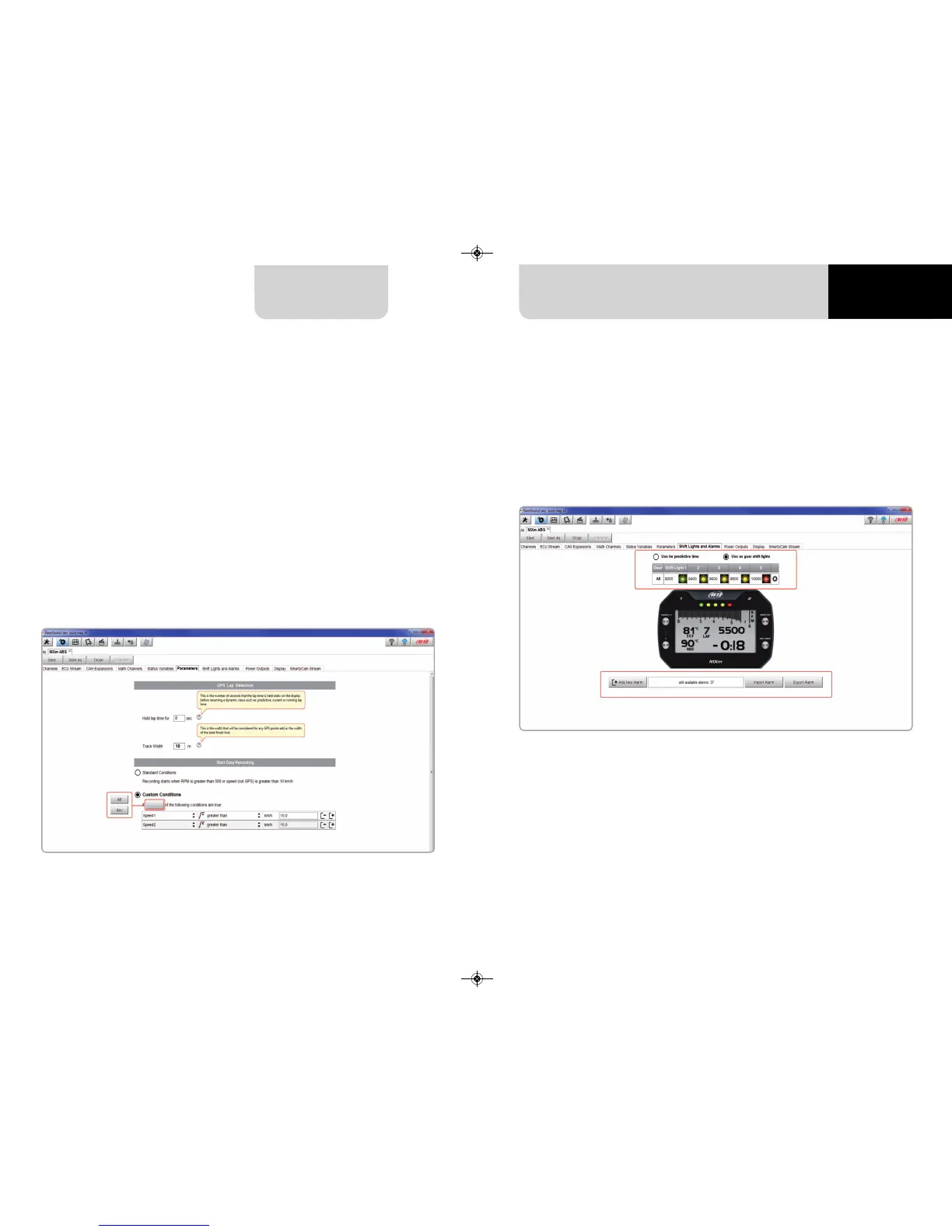 In this page you can set shift lights (on top) and set the alarm led (bottom) of your
