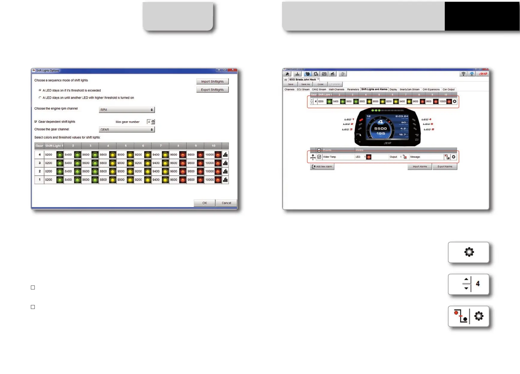 Once alarms and shift lights are set summaries appear: on top is shift lights summary while