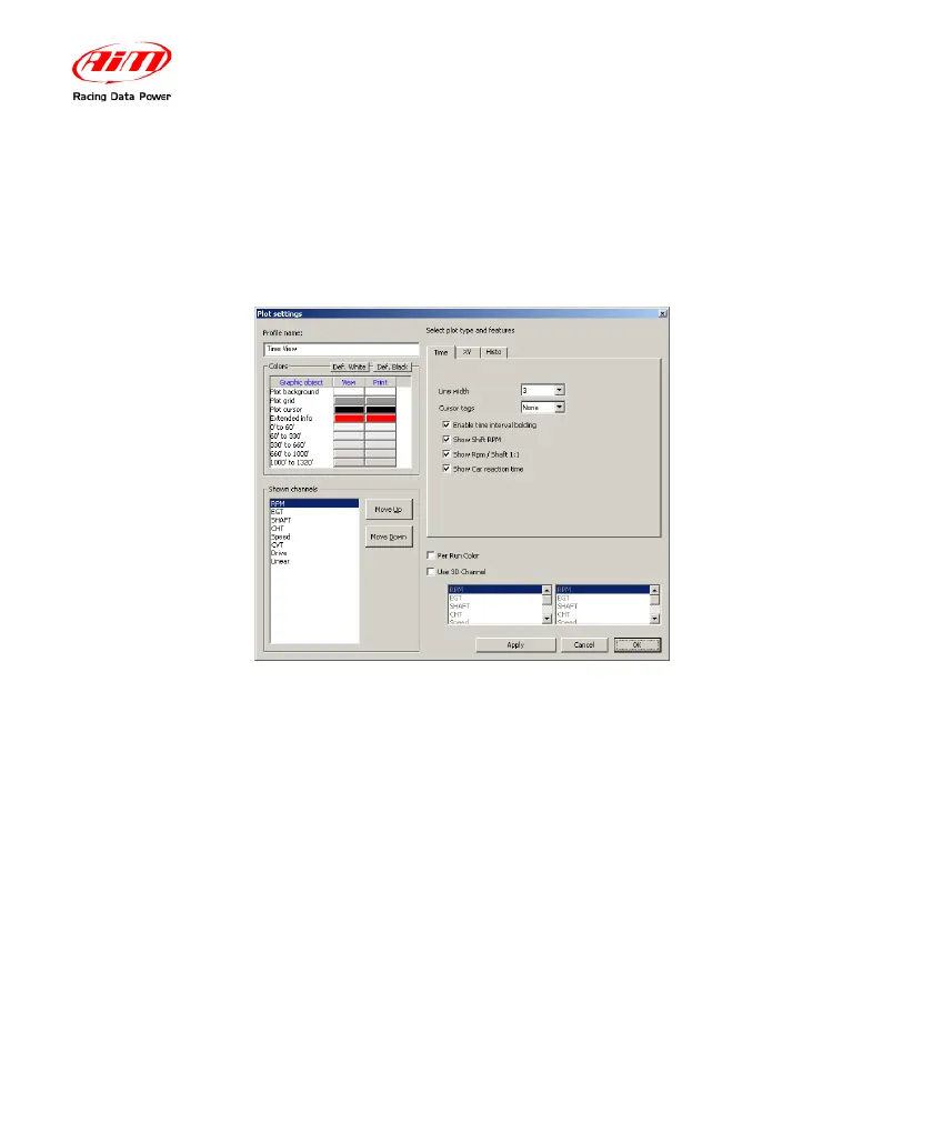Plot settings can be modified through the Settings command in the toolbar. The