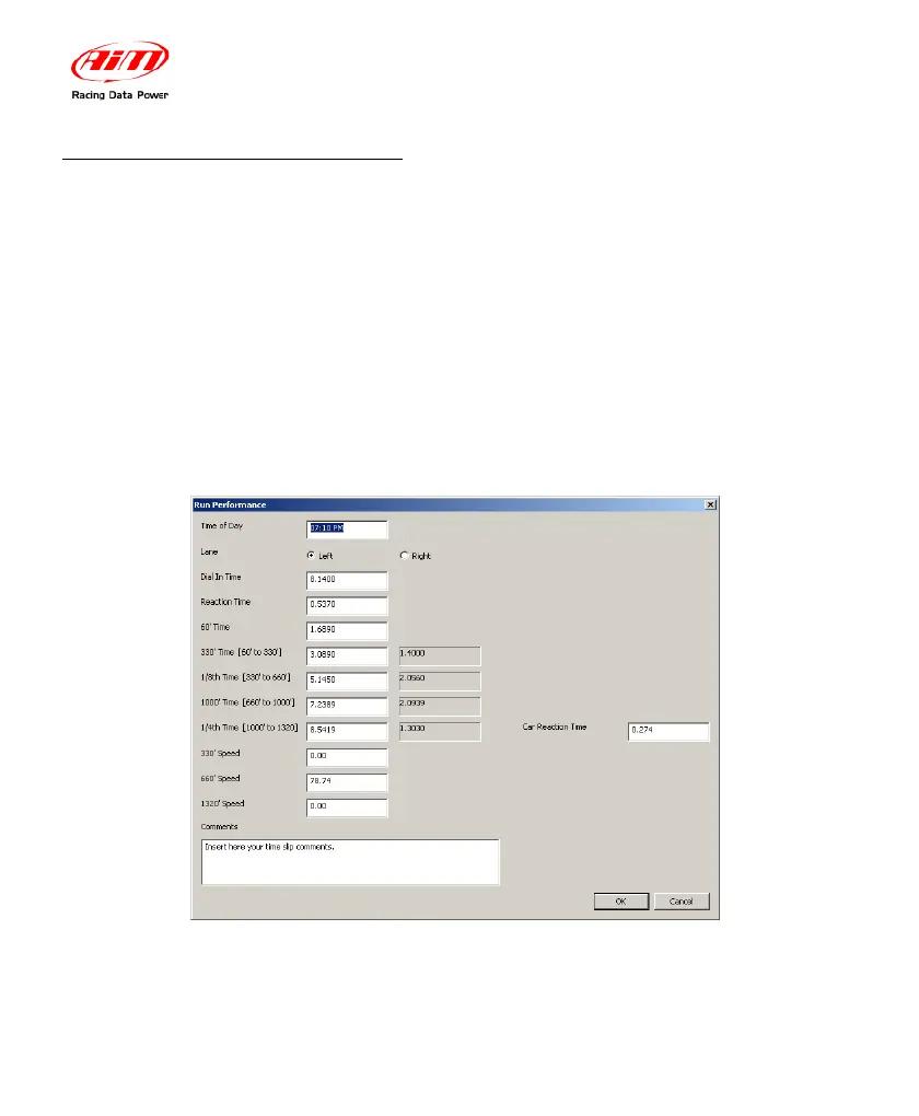 been designed to allow you to insert useful data (reaction time, 60’ – 330’ – 1/8