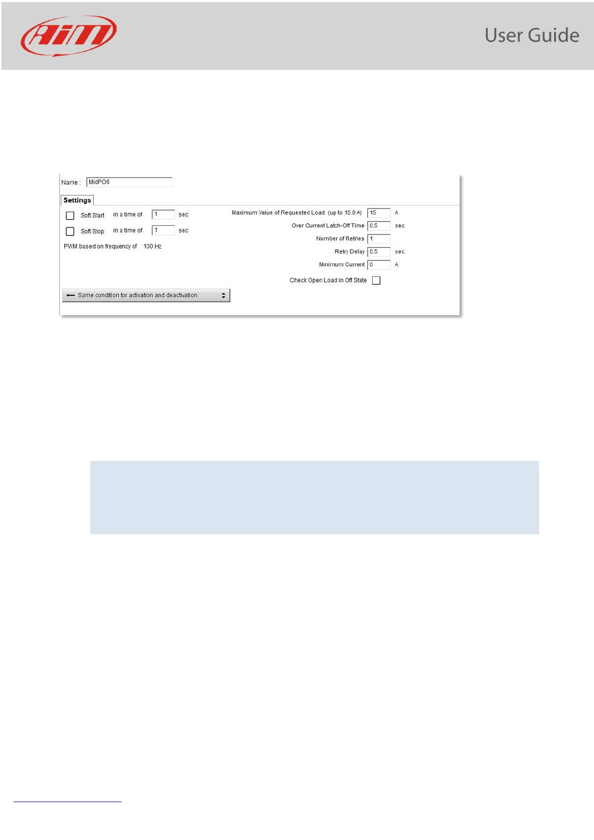 • In B type outputs, there is also the possibility to set PWM frequency