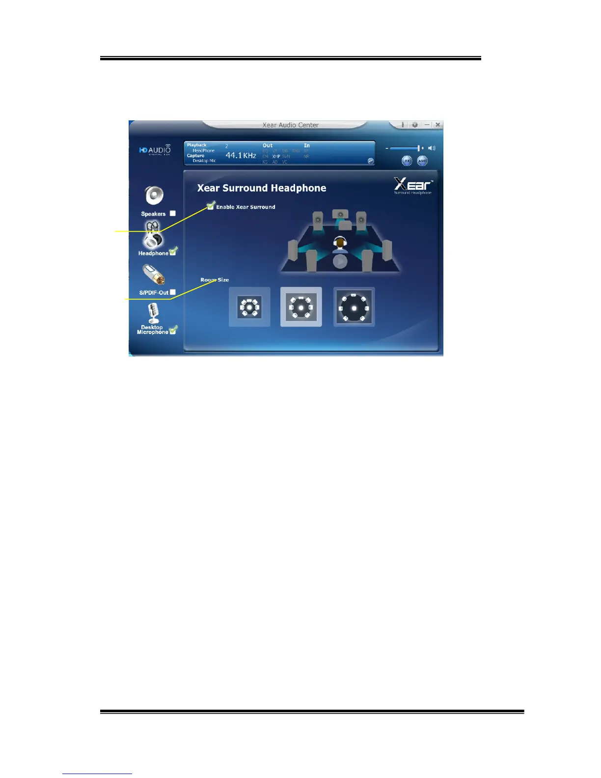 XearSurroundHeadphoneprovides3roomsizemodesandone