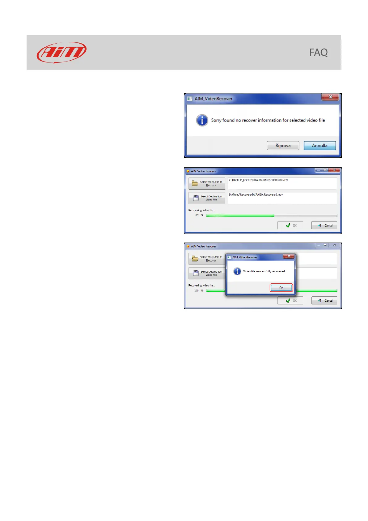 • at the end the software shows the message
