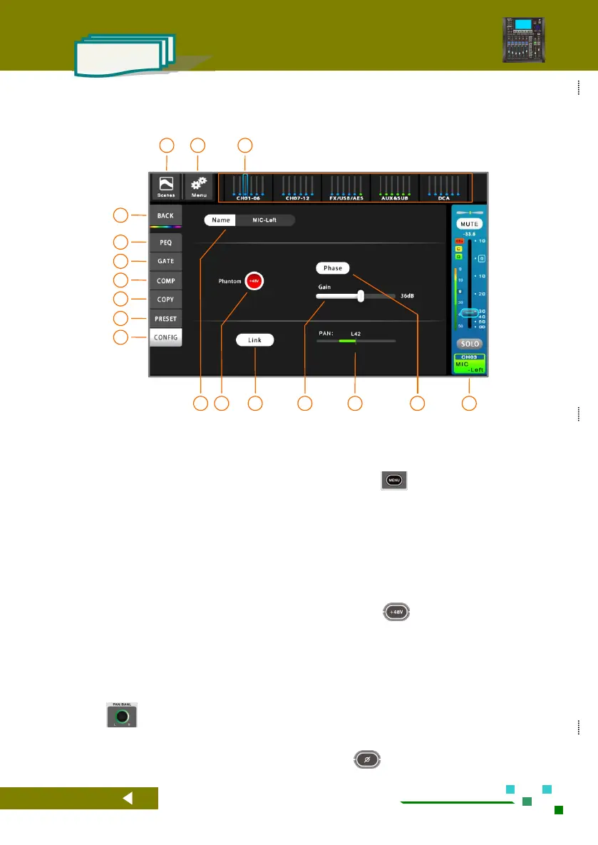 supported. The parameters of the odd channel are automatically copied to the even channel when linked, and the phantom power control is also copied.