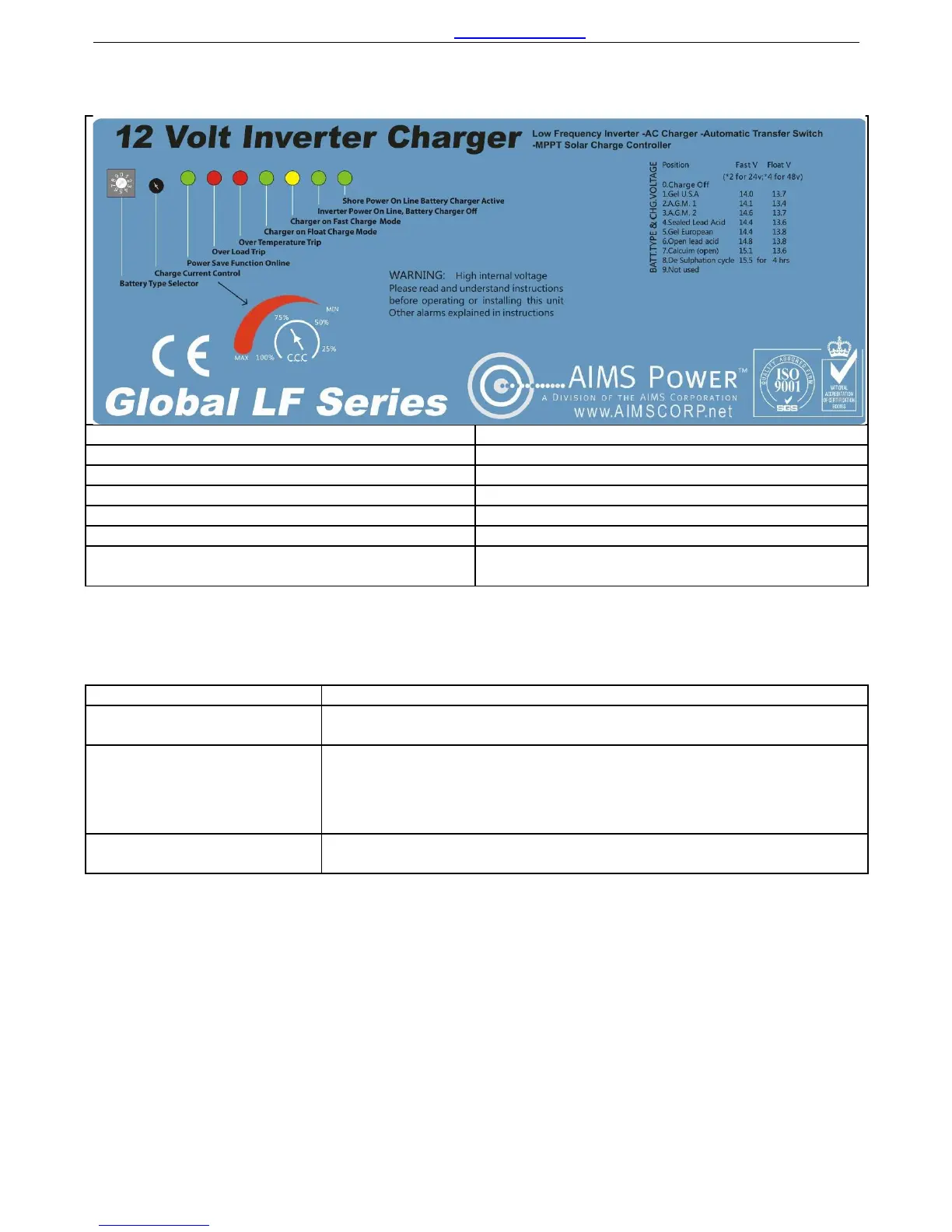 FLOAT CHARGE GREEN LED lit in Float Charging Mode